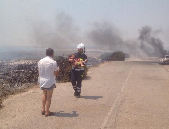 Uno spettacolo spettrale: circa 20 ettari di macchia mediterranea della Salina dei Monaci andati in fumo in poco più di 5 ore. Due operatori volontari della Protezione Civile in ospedale, intossicati dal fumo: uno di loro non ha esitato a spingersi all’interno della zona interessata dalle fiamme per recuperare e trarre in salvo una bambina (è quello che si vede nella foto). Alcune auto parcheggiate lungo la strada che costeggia la salina carbonizzate. Stessa sorte hanno rischiano le abitazioni di Torre Colimena confinanti con la Salina, fatte sgomberare l’altro ieri dai mezzi di soccorso: circa 30 le persone fatte evacuare a livello precauzionale.