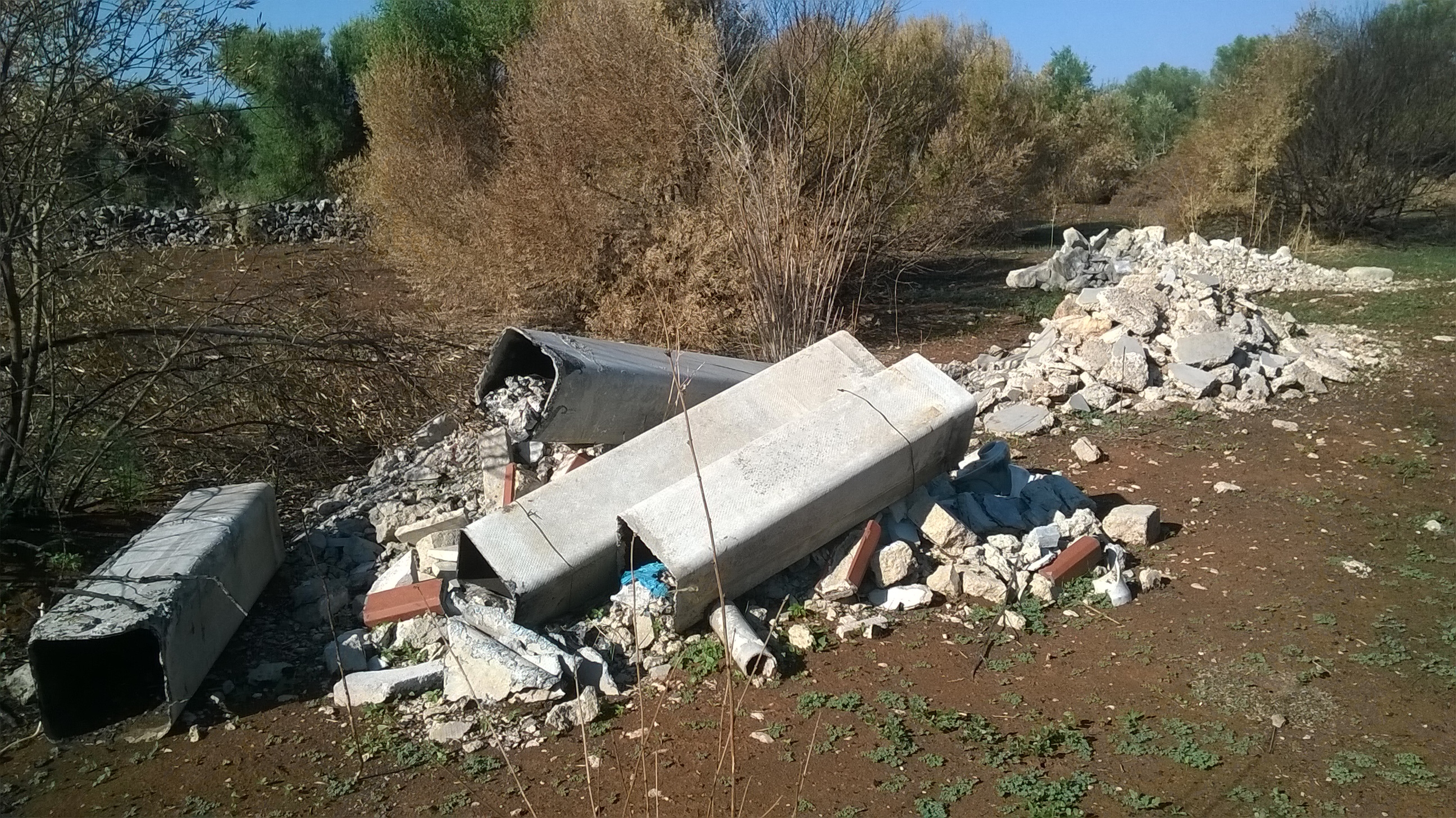 Discariche a cielo aperto in aree agricole e in macchia mediterranea di contrada Tremola, campagna che si trova al confine tra i Comuni di Sava e Torricella.