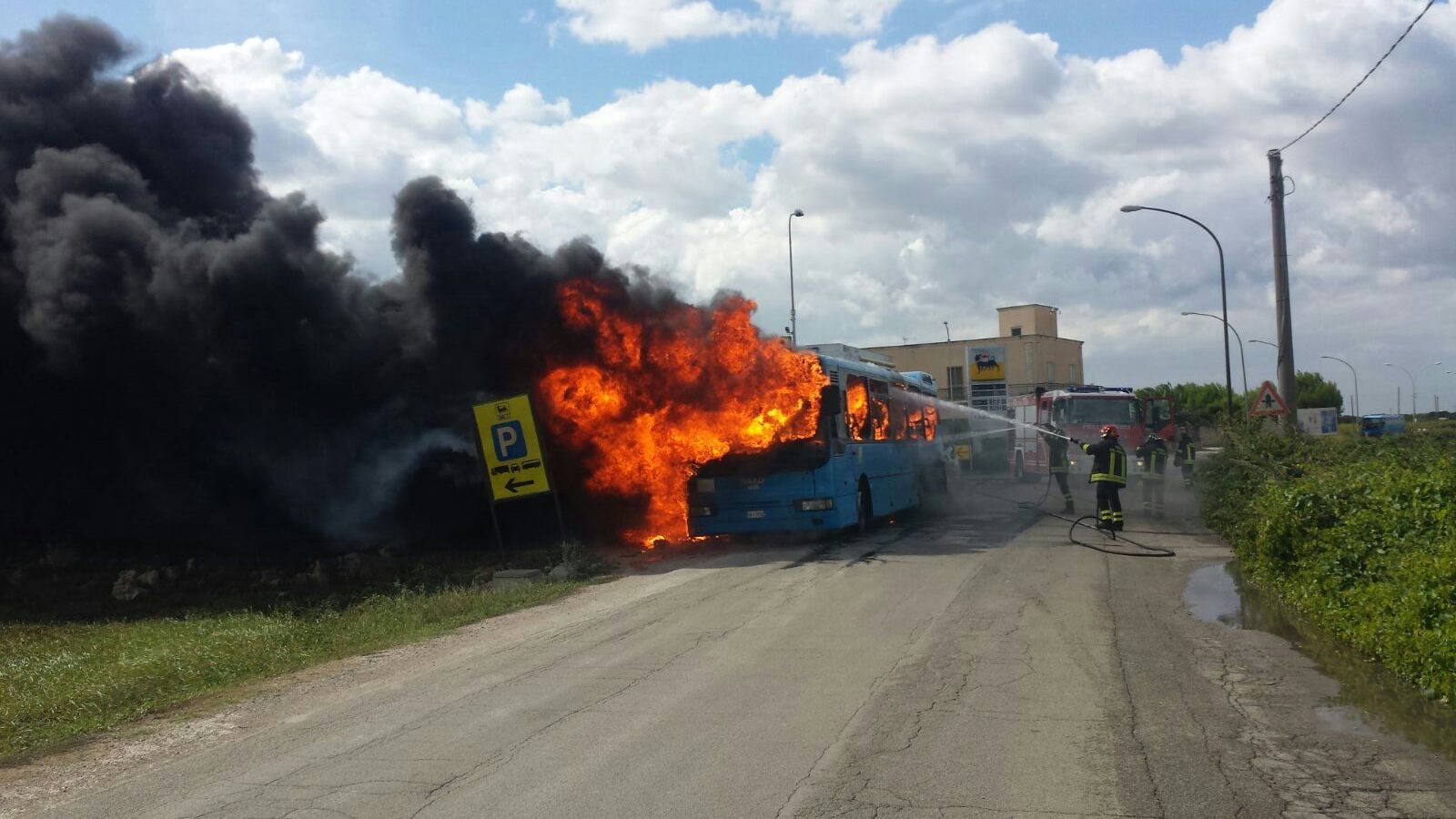 L’intuito e la prontezza di riflessi dell’autista ha salvato una trentina di studenti pendolari di Avetrana, il cui pullman, della linea Sud Est, è andato in fiamme ieri pomeriggio, poco prima delle 14, alla periferia dell’abitato.