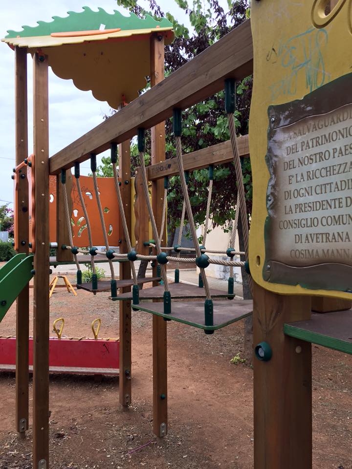 tutte le giostrine di piazza Padre Pio, semi-distrutte dai vandali, e per far posizionare una videocamera che possa sorvegliare quanto accade in un’altra area molto frequentata dalle famiglie di Avetrana, ovvero piazza Unicef.