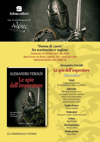 di Alessandro Feroldi, “Le spie dell'imperatore” (Schena Editore), e dall'alternarsi di testimonianze di donne che si sono contraddistinte in diversi campi. Il ruolo di Canale, in questa occasione, sarà quello di moderatore dei vari interventi... Inoltre, in omaggio a tutte le donne presenti, interpreterà un brano del mio spettacolo "Le Corde dell'Anima".L'appuntamento è per domenica, alle ore 18.00, presso l’hotel "Svevo" (via Paolo Cassano, 319) di Gioia del Colle.
