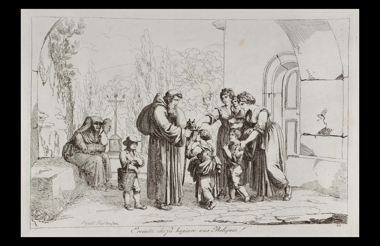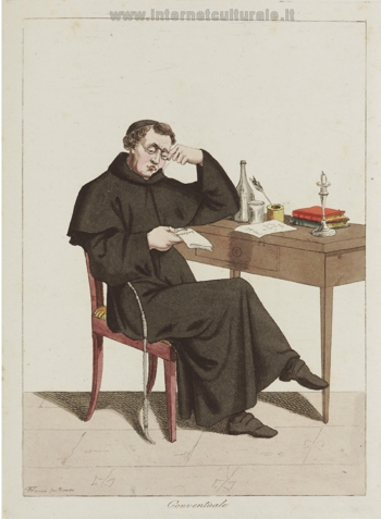 2) Le altre immagini sono tratte da: FERRARI, FILIPPO, COSTUMI ECCLESIASTICI CIVILI E MILITARI DELLA CORTE DI ROMA Conventuale. Biblioteca di Storia moderna e contemporanea – Roma, www.internetculturale.it PINELLI, BARTOLOMEO (ROMA 1781-1835), Eremita che fa baciare la reliquia: Costumi del Regno di Napoli, Biblioteca di Storia moderna e contemporanea - Roma – www.Internetculturale.it.