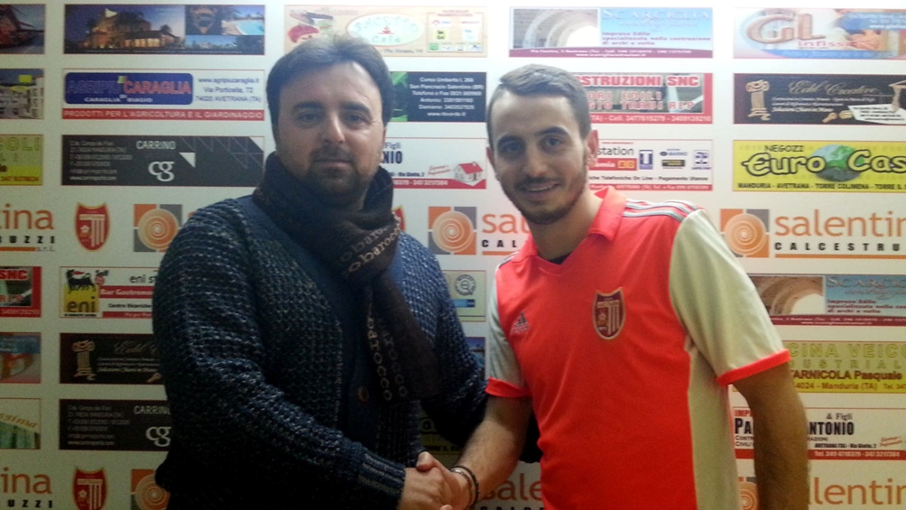 L’U.S.D. Avetrana si mostra molto attiva nel mercato di dicembre e, dopo l’ingaggio di Francesco Indirli, piazza un altro importante colpo in entrata. Arriva dall’ASD Don Bosco di Manduria, il giovane attaccante Simone Saracino, avetranese doc, classe 1990, per rinforzare le prime linee biancorosse.