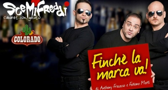 Dopo tre edizioni consecutive nel cast della trasmissione comica di Italia 1 Colorado e in Tv, fino alla metà di dicembre, protagonisti dell’edizione autunnale condotta da Luca e Paolo, i “comici 3M, musica-marchi-mimica” Scemifreddi (come li ha definiti il settimanale Tv Sorrisi e Canzoni) sono pronti ad approdare nei teatri pugliesi con il loro nuovo spettacolo, Finché la marca va, presentato con grande successo di critica e pubblico, in prima nazionale, il 14-15 maggio scorso al Teatro Di Cagno di Bari.