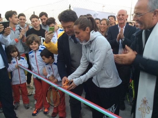 Centinaia di persone, nonostante il momento pre-festivo, hanno affollato la struttura polifunzionale di via Consiglio, diretta da Nico Traversa, per salutare la campionessa tarantina ed assistere al taglio del nastro dei nuovi campi.