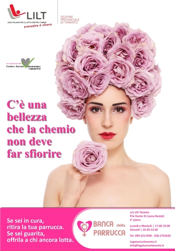 parrucche, infatti, la Lilt di Taranto vuole aiutare le donne che non possono permettersene una. Chiunque voglia donare una parrucca, invece, potrà farlo liberamente, senza alcuna restrizione.