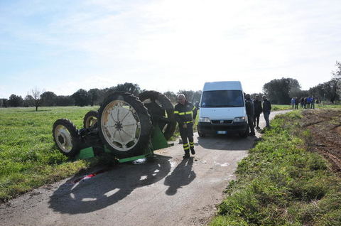 Un incidente mortale si è verificato questa mattina alle 8 sulla Campi Salentina-Sandonaci. La vittima è Saiba Diao, 19 anni, originario del Senegal, che risiedeva a Campi. Il giovane è rimasto schiacciato dal trattore che stava guidando mentre si recava sul posto di lavoro, in campagna. La dinamica dell'incidente è ancora poco chiara, ma sembra che il trattore si sia ribaltato ad una curva. Il datore di lavoro ha dichiarato che il giovane si era messo alla guida del mezzo senza avvisare nessuno.