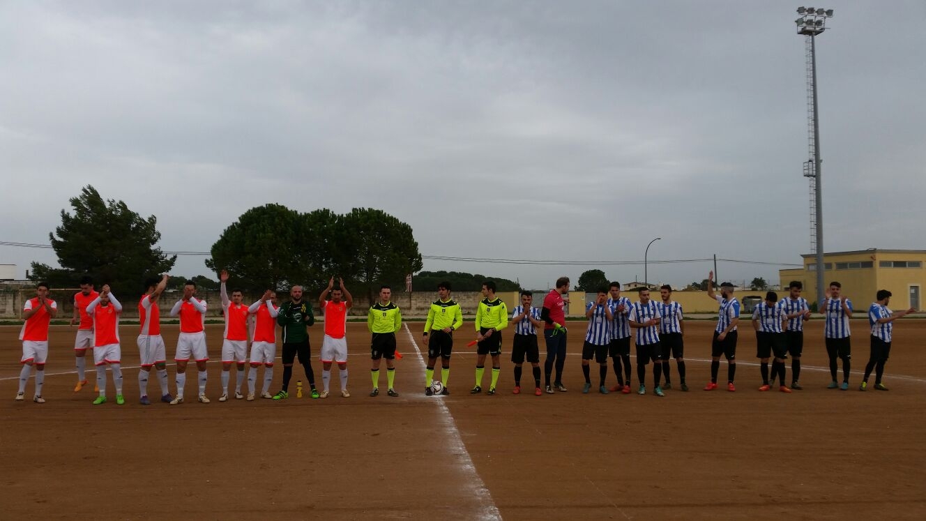Fasano vendicando l’eliminazione dalla Coppa Italia. Non c’è mai stata partita: dopo 2 minuti l’Avetrana era già in vantaggio. Sono cinque “squilli” rivolti al campionato da una squadra che sogna l’Eccellenza.Una curiosità: in avvio di gara, il massaggiatore Antonio Orlando dell’Avetrana, 76 anni, ha consegnato al suo coetaneo e collega del Fasano Dario Faggiana un premio per l’attaccamento al calcio.