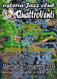 presenta la IX edizione della SAGRA DEL VINO NOVELLO.Ospiti della serata: SUONI RURALI (Anna Cinzia Villani - voce, armonica a bocca, tamburello; Carla Maniglio – voce; Annamaria Bagorda – organetto; Giovanni Amati - voce, tamburello, tamburo a frizione).