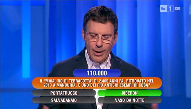 Un po’ a sorpresa, il “maialino” è rimbalzato anche in una delle trasmissioni televisive più seguite nel pre-serale: “L’eredità”, condotta, su Rai Uno, da Fabrizio Frizzi. Nella puntata di venerdì della scorsa settimana, una domanda posta da Frizzi ad un concorrente verteva proprio sul nostro maialino, un reperto di 2400 anni fa.