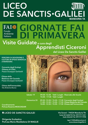 Gli studenti del liceo “De Sanctis-Galilei” di Manduria saranno gli “Apprendisti Ciceroni” per le giornate FAI di primavera