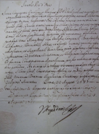 Purtroppo, la documentazione non risulta nel complesso particolarmente utile a ricostruire fenomeni essenziali della vita della comunità, quali l’attività religiosa, educativa ed assistenziale. E’ auspicabile che, in tal senso, alcune importanti indicazioni possano venire da uno spoglio dei documenti romani.