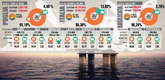 In provincia di Taranto, la percentuale più alta a Ginosa (47,6%). A Sava, invece, una percentuale fra le più basse (37,65%). Manduria (44,31%) e Avetrana (42,02%) sopra il 40%