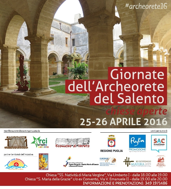 Maruggio è l’unico centro della provincia di Taranto ad aver aderito alle Giornate dell’Archeorete del Salento 2016, che si svolgeranno oggi e domani e consentiranno a turisti e villeggianti di poter visitare le chiese.