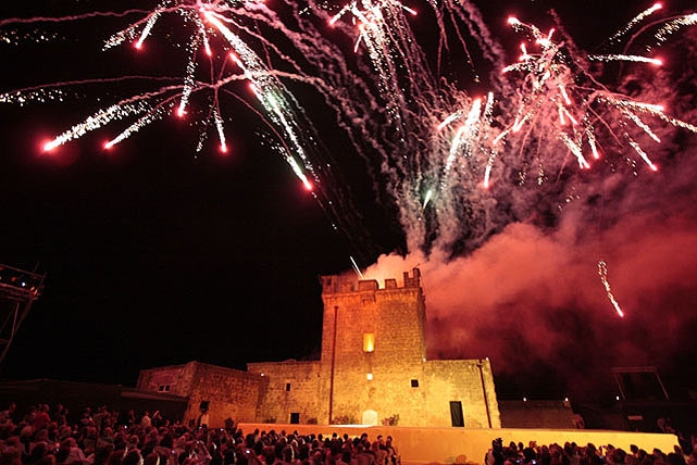 Lo spettacolo si sviluppa tra lo svettante Torrione a base quadrata, baluardo eretto a difesa di questi luoghi intorno al 1350, la torre a base tonda, edificata probabilmente dal principe Galeotto Pagano nel corso del cinquecento e i frantoi ipogei.