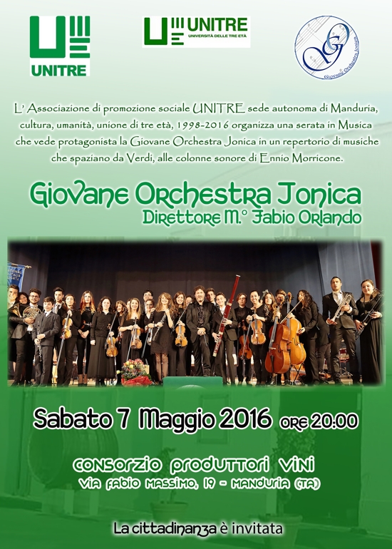 Eseguirà un repertorio di musiche che spaziano da Verdi alle colonne sonore di Morricone. L’iniziativa è promossa Unitre