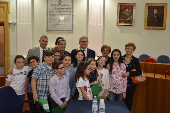 Anche gli alunni della classe 5ª D dell’istituto comprensivo “Don Bosco” di Manduria hanno tratteggiato, davanti ad una sala consiliare gremita, la figura di Elio Dimitri. Ai presenti (fra questi la signora Luisa e i figli Paolo e Giancarlo), i giovanissimi alunni, guidati dalla maestra Rosetta Fanuli, hanno inizialmente illustrato le motivazioni del percorso avviato in classe per conoscere e delineare il personaggio.