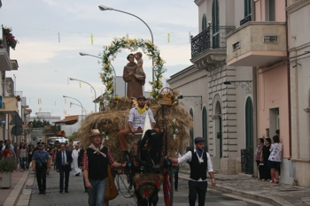 dalle grandi ruote della civiltà contadina del secolo scorso, covoni di grano appena mietuto e artigianali altarini con la foto del santo. Una forma di ringraziamento nei confronti di Sant’Antonio, per aver garantito, per un altro anno, il prezioso raccolto. Una festa, quasi un rito, dal grande valore devozionale. Per impetrare la protezione del compatrono, poi, ogni anno non mancava un gesto di carità nei confronti dei più bisognosi: i contadini si recavano presso la propria parrocchia per donare una parte del proprio raccolto, dal quale si ricavava il “pane della carità”.Protagonista di questo rito della vita popolare era e resta anche il cavallo, un tempo fondamentale aiuto per l’uomo nei duri lavori nelle campagne. Fu questo quadrupede, infatti, il protagonista di un miracolo compiuto da Sant’Antonio: il cosiddetto “miracolo del giumento”.