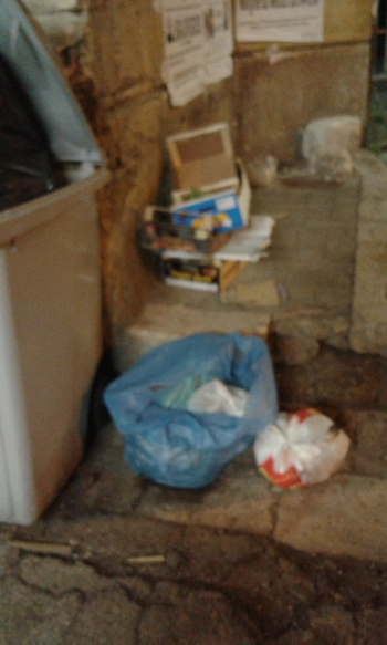 Quello che maggiormente mi preoccupa sono gli scarti di lavorazione (che dovrebbero essere smaltiti da ditte specializzate): vengono depositati all’interno dei cassonetti o nelle vicinanze degli stessi che oltre ad attirare cani e gatti vengono ad “incuriosire” anche ogni tipo di roditore, mettendo in grave pericolo la salute delle persone e non solo.Il comportamento di tali “commercianti” (che per fortuna costituiscono una minoranza rispetto alla totalità) sta anche demotivando diversi cittadini, che si sentono autorizzati a lasciare i loro rifiuti nelle vicinanza di questa “isola ecologica” realizzata dall'inciviltà di pochi!
