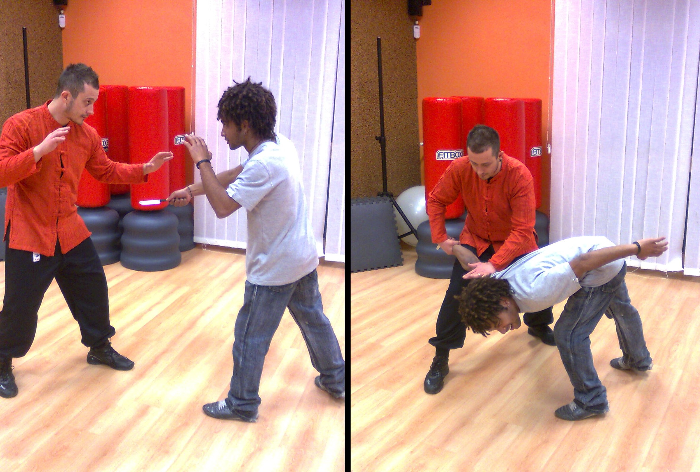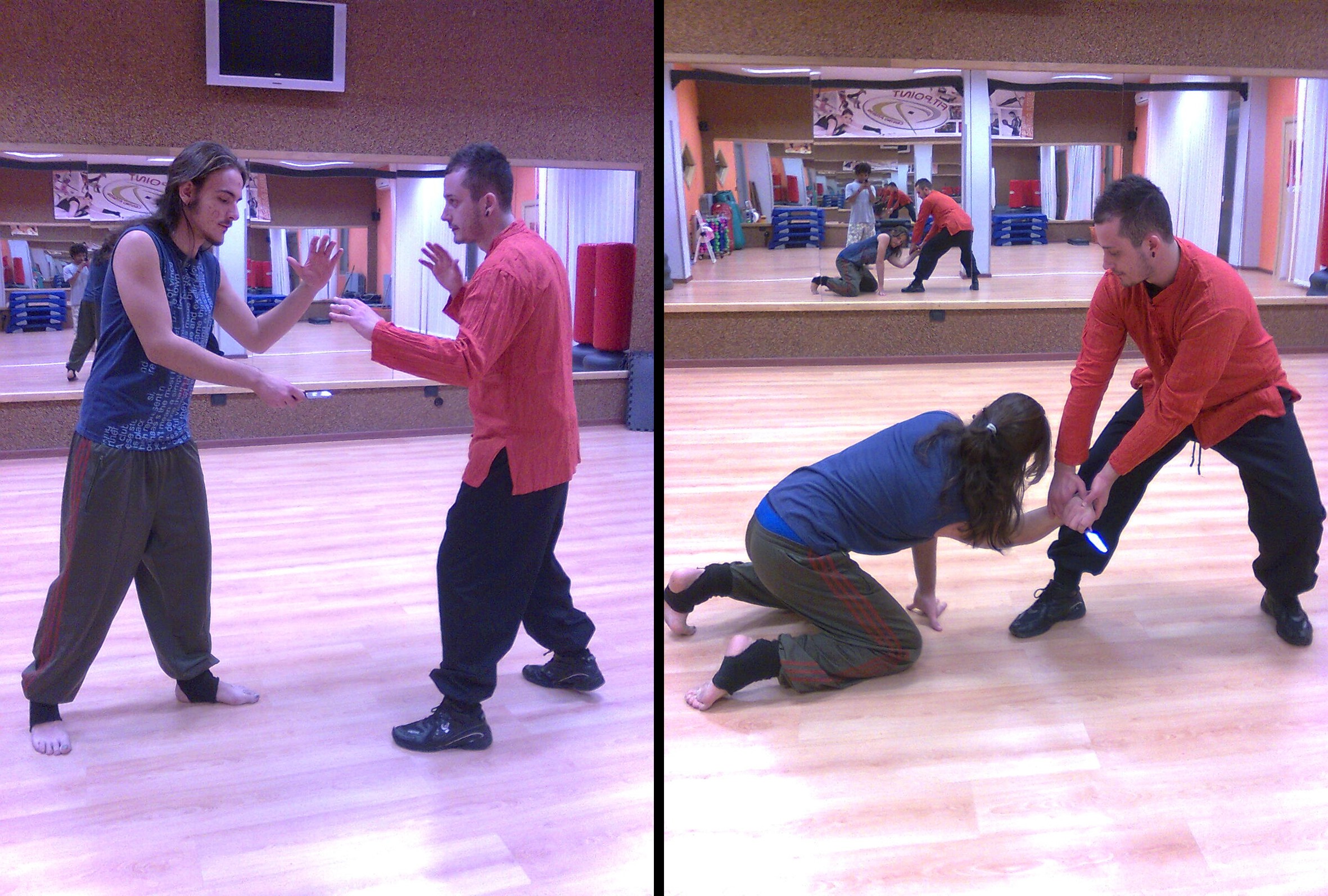 Cavallo, proprietario della palestra che mi ospita, » spiega Prudenzano « è rivolto a grandi e piccoli, ed è mirato non soltanto al raggiungimento della definizione fisica, ma soprattutto alla conoscenza di se stessi e dei propri limiti psico-fisici e alla conquista del controllo della propria e della altrui aggressività. Si mira all’abbattimento immediato dell’avversario e all’eventuale disarmo da armi da fuoco, coltelli o bastoni, attraverso tecniche di ogni tipo, tali da provocare fratture e rotture ossee con mani, gomitate, testate, calci circolari, anteriori, laterali e saltati, trazioni e deflessioni.Tengo a puntualizzare però che queste tecniche devono essere utilizzate solo in casi di pesanti aggressioni e reale pericolo per la propria incolumità, quando non si può proprio fare a meno di difendersi. In una società come quella odierna » prosegue l’istruttore « dove a padroneggiare sono l’aggressività e la violenza, sono in tanti a sentirsi eroi e agire come tali, ma bisogna sempre tener presente che gli eroi sono i primi a cadere e poi ad essere dimenticati. E badate bene, l’avversario che ognuno di noi potrebbe trovarsi di fronte può essere reale o immaginario, vero o metaforico, perché spesso il nostro più grande nemico siamo noi stessi. L’Autodifesa a pieno contatto infonde quindi sicurezza nelle proprie capacità e offre un valido aiuto contro atti violenti e persecutori, non insegnando la violenza ma piuttosto a difendersi da essa. Ritengo infatti importante sfatare quel luogo comune piuttosto diffuso, secondo il quale le arti marziali sarebbero violente. Al contrario, chi pratica le vere arti marziali non è mai un violento, perché riesce a capire cosa sia il dolore, riesce a convogliare le energie e trasformare la propria aggressività in qualcosa di positivo ».