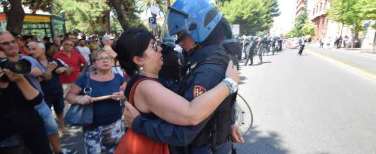 In piazza su fronti opposti, uniti dalla malattia nella vita. La foto dell'abbraccio tra la manifestante anti Ilva durante la visita del premier Renzi e un agente di polizia durante un sit-in di protesta a Taranto sta facendo il giro del web. Nella città pugliese avevano manifestato parenti e amici di persone che non ci sono più o stanno combattendo contro una brutta malattia. Su Facebook una delle mamme che erano lì ha postato una foto dell’abbraccio con una frase emozionante: "Io lo so che siete anche voi con noi, lo so. Perché siete padri, fratelli, siete come gli operai dell'Ilva: portate il pane a casa. Poveri cristi, come noi".