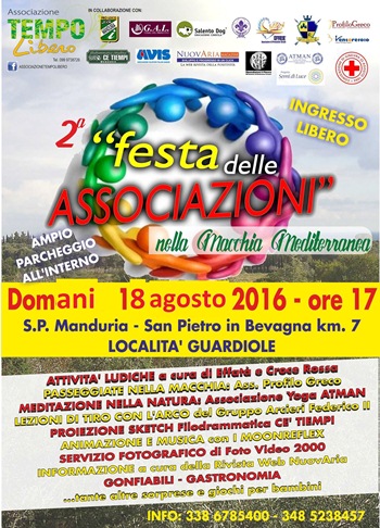 collaborazione con altre associazioni, tra cui la Pro Loco di Manduria, la II Festa delle Associazioni nella macchia mediterranea.