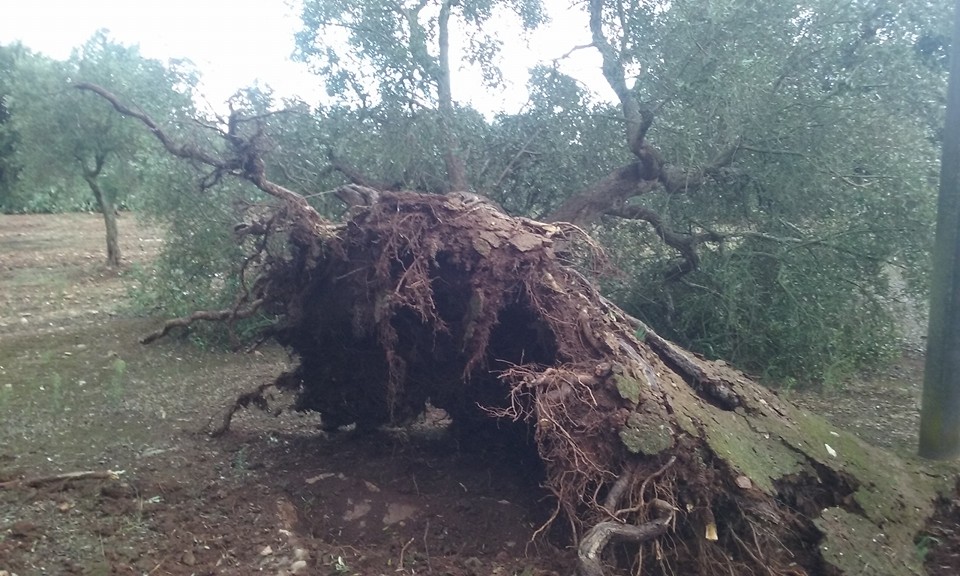 Alberi di ulivo sradicati e qualche muretto abbattuto dal forte vento