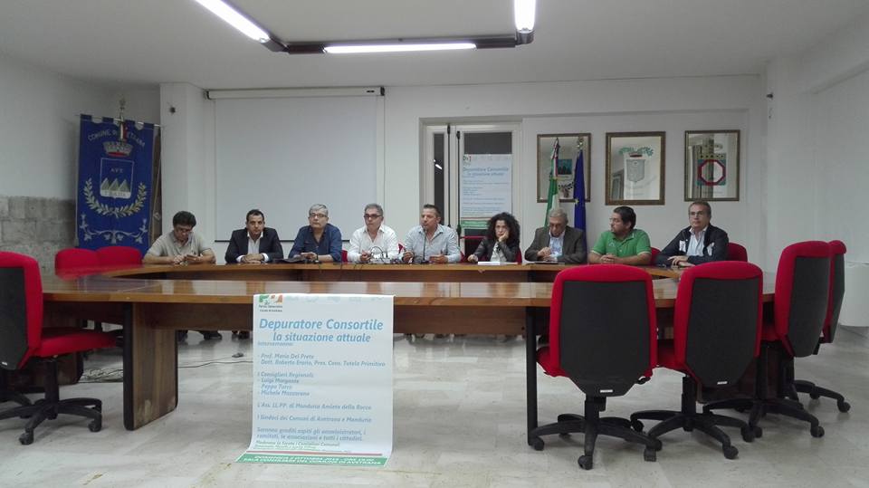 «La volontà politica di tutelare la costa è stata chiaramente espressa dai comuni interessati, dal governatore della Puglia e dai consiglieri regionali, fra cui mi fa piacere ricordare i presenti Turco, Morgante e Mazzarano» ha affermato Mario Del Prete. «Sul piano strettamente tecnico-scientifico è stato spento il confronto tra Regione, AQP e i consulenti dei Comuni e dei comitati, che sostengono diverse e meno costose soluzioni di trattamento e scarico dei reflui per preservare le condizioni eccellenti delle spiagge di Manduria e dintorni. Invece di valorizzare questo confronto tecnico, si assiste ad uno strano comportamento nella gestione del problema, anche se logica vuole che occorrerebbe la migliore cooperazione tra i vari organi tecnici e scientifici per perseguire l’obiettivo politico già espressamente definito.