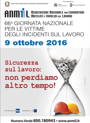 66ª Giornata per le Vittime degli Incidenti sul Lavoro, manifestazione indetta a livello nazionale dall’ANMIL (Associazione Nazionale fra Lavoratori Mutilati e Invalidi sul Lavoro) per ricordare i tantissimi lavoratori che, oggi come ieri, hanno sacrificato la propria vita o la propria salute per il lavoro.
