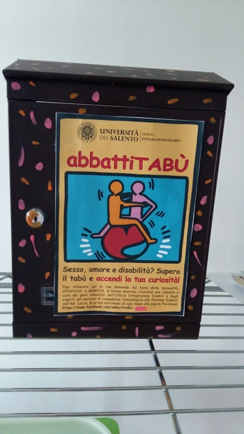 Salento il progetto “Abbattitabù. Sesso, amore e disabilità? Supera il tabù e accendi la tua curiosità”, nato dalla collaborazione tra l’Ufficio Integrazione Disabili dell’Ateneo e la Struttura Sovradistrettuale di Riabilitazione della ASL Lecce (Servizio di Consulenza Sessuologica alle perone disabili). Si tratta di una sperimentazione che si inserisce in un percorso avviato da tempo dai due Enti, sulla base di un apposito protocollo d’intesa, per rimettere al centro dell’attenzione le persone con disabilità nelle varie dimensioni di studio, lavoro, tempo libero e affettività.Stereotipi e tabù sul tema dell’affettività delle persone con disabilità si incontrano spesso da parte sia delle persone con disabilità sia delle persone normodotate. Da qui, grazie anche alla collaborazione con alcuni studenti universitari disabili che stanno seguendo un percorso di “peer educator” (Maria Stella Falco, Serena Grasso,Giacomo Linciano, Danilo Mi), è nata l’idea del progetto “Abbattitabù”.