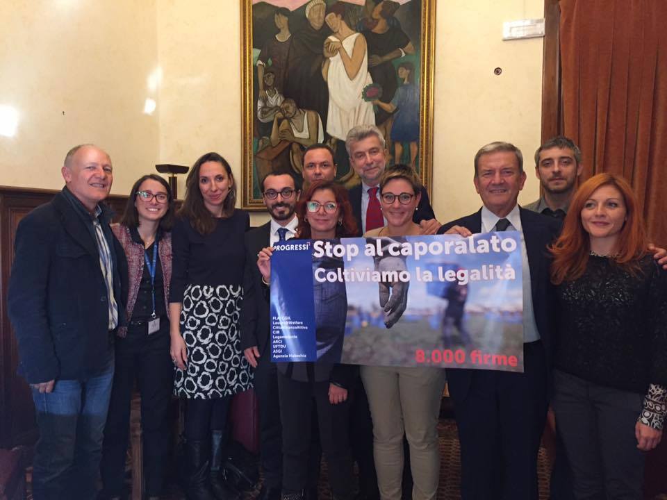 «”Progressi”, insieme ad altre nove organizzazioni, ha raccolto l’appello di migliaia di cittadini che chiedevano la rapida approvazione della legge contro il caporalato. Abbiamo organizzato il lancio della campagna nazionale “Stop caporalato, coltiviamo la legalità” in Puglia. Siamo stati nella baraccopoli di Nardò, in provincia di Lecce, per incontrare i lavoratori migranti che vivono senza elettricità, né servizi igienici. E abbiamo ascoltato la drammatica storia di una giovane bracciante italiana sfruttata dai caporali nel brindisino. Queste testimonianze le abbiamo raccolte in un video diffuso poi da alcuni media e visualizzato migliaia di volte. Con una contemporanea azione di pressione parlamentare, abbiamo contribuito a far approvare velocemente il disegno di legge: ad agosto dai senatori, prima della chiusura estiva, e alla riapertura dei lavori parlamentari dai deputati, assicurandoci che quest’ultimi non apportassero modifiche al testo. Infine, abbiamo consegnato le firme direttamente ai presidenti delle commissioni Giustizia e Lavoro della Camera dei Deputati che stavano esaminando il provvedimento poi approvato dall’aula martedì 18 ottobre con 346 voti favorevoli, 25 astenuti e nessun contrario.