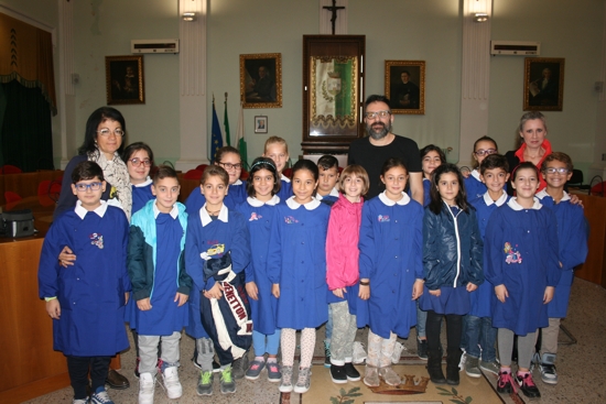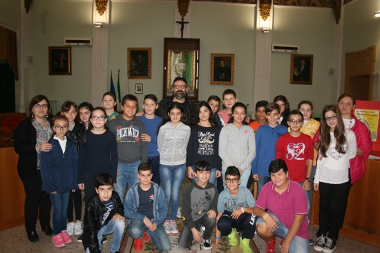 comprensivo “Prudenzano” di Manduria: Omar Di Monopoli, che stamani, nell’aula consiliare, ha calamitato l’attenzione degli alunni della V C della scuola primaria e della I C della scuola secondaria di primo grado.