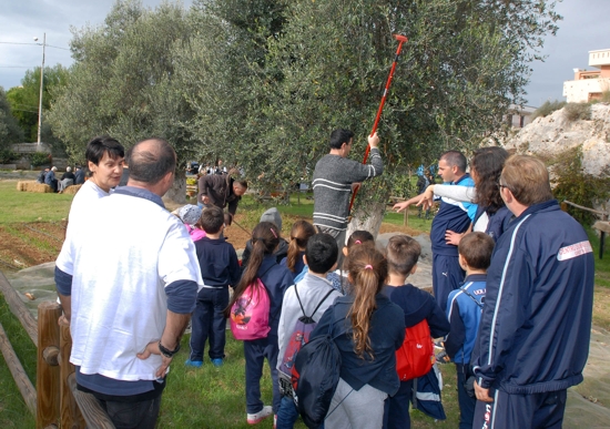 Dopo aver fatto visitare l’orto, i disabili hanno mostrato ai bambini come si raccolgono le olive, mentre un anziano ha spiegato agli alunni l’importanza dell’olio nell’economia rurale e domestica di un tempo.