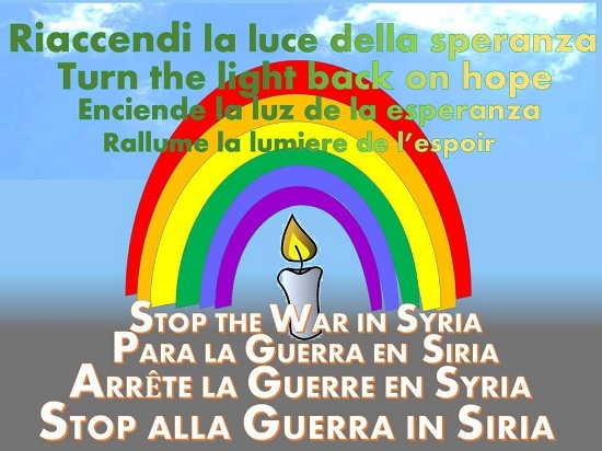 Aderendo inoltre alla pagina facebook “Piazze per la pace”, si potrà sostenere la richiesta inoltra ai governi di tutto il mondo di adottare immediatamente ogni possibile soluzione politica per fermare la guerra in Siria e il genocidio di un intero popolo; di ristabilire la pace in Medio Oriente e il rispetto dei diritti umani; di garantire ai rifugiati sicurezza in materia di asilo politico».
