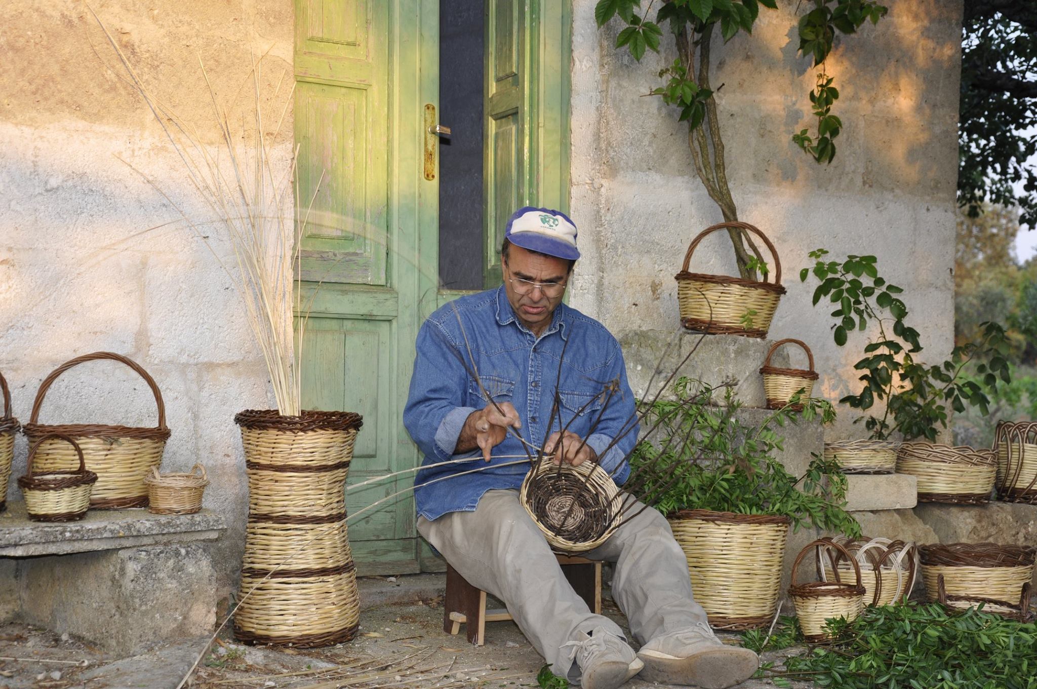 realizzare cesti, “panari”, graticci e “cannizzi” attraverso l’arte dell’intreccio a mani nude. Un’arte che si trasmetteva di generazione in generazione, finchè questi contenitori “ecologici” furono gradualmente sostituiti, a partire dalla fine degli anni ’60, con altri realizzati in plastica, sicuramente meno belli e più inquinanti.Antimo Calò vive a Uggiano Montefusco. Ha ereditato questa passione dal padre Cosimo. Seguendo i suoi insegnamenti, l’ha coltivata nel corso degli anni, ampliando la produzione con creazioni sempre più funzionali. Con grande orgoglio, affascina le nuove generazioni realizzando questi contenitori intrecciando giunco, vimini e canne e con il solo ausilio di coltelli, punteruoli e falcetti.