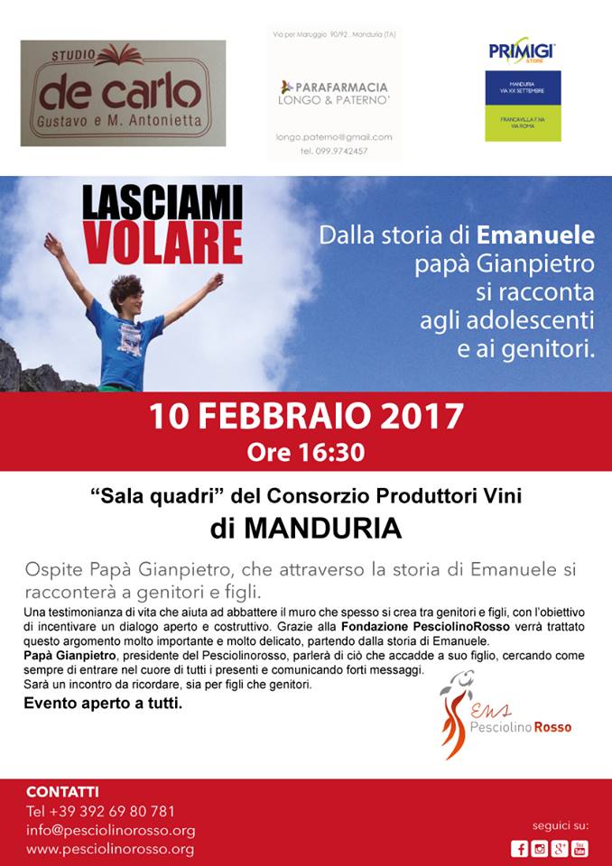 «Pochi giorni dopo la morte di mio figlio» ha raccontato Giampietro, «sognai di trovarlo nudo in fondo al mare e di salvarlo riportandolo in superficie: fu un’illuminazione. Capii che, seppure il dolore della perdita di Ema mi avrebbe accompagnato per sempre, sarei riuscito a dare un senso a quello che era successo a lui impegnandomi a fare in modo che non succedesse ad altri ragazzi. Così ho creato la fondazione per Emanuele, così ho scritto il libro “Lasciami Volare”, pensato per padri e figli che fanno fatica a parlarsi. Così sono andato in televisione a parlare di Emanuele e di quella sciocchezza che gli è costata la vita, così vado nelle scuole, ovunque mi chiamino a parlare della storia di mio figlio. Così ho coinvolto due ragazzi a fare il giro d’Italia in bici, con me. Perché pedalando, faticando, guardando la meraviglia della natura, non ci si pensa alla droga, ci si salva la vita”.