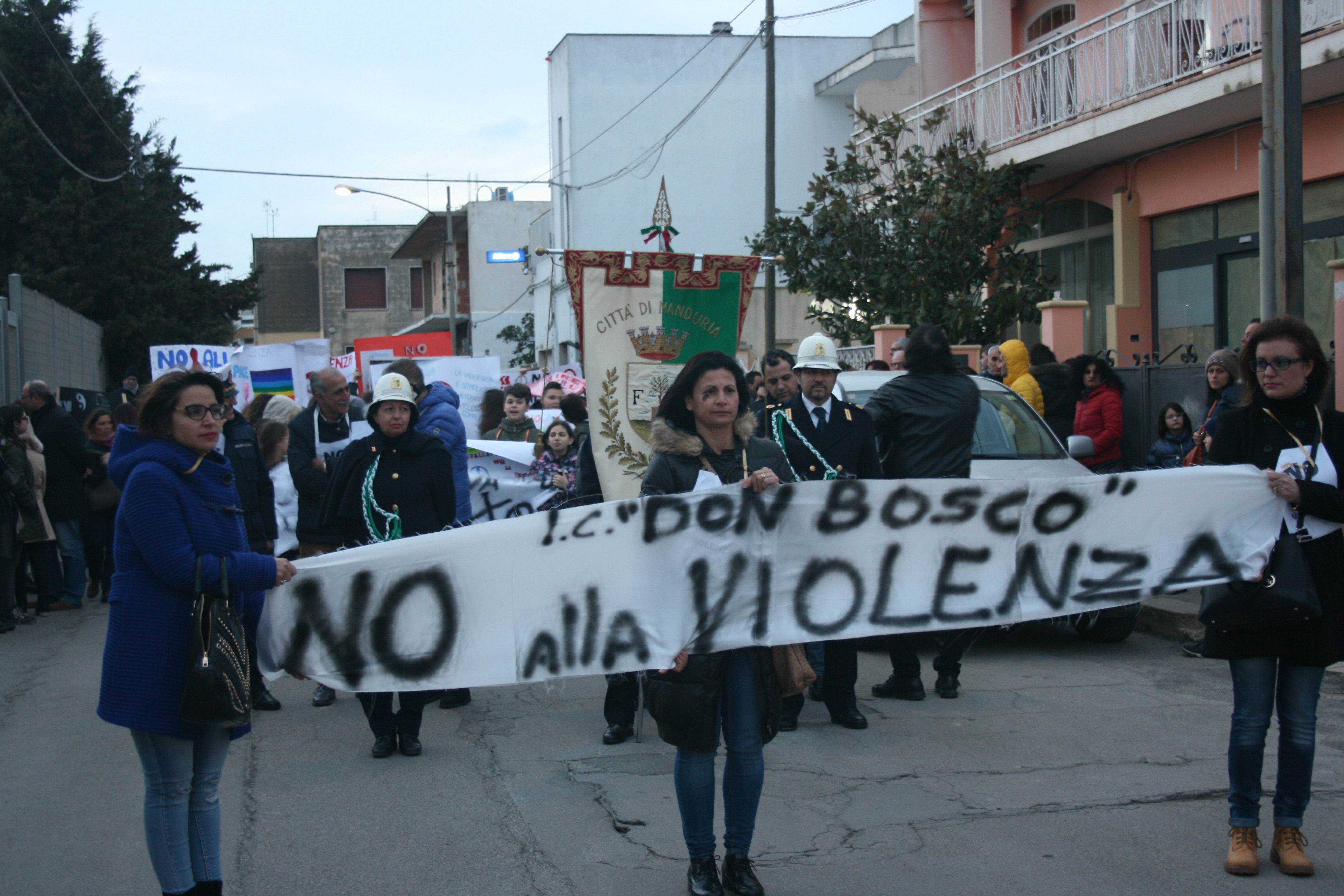 Un corteo di oltre 300 unità fra studenti e docenti delle varie scuole di Manduria, aperto dal gonfalone del Comune di Manduria e dagli amministratori locali, ha attraversato ieri sera le vie della città.