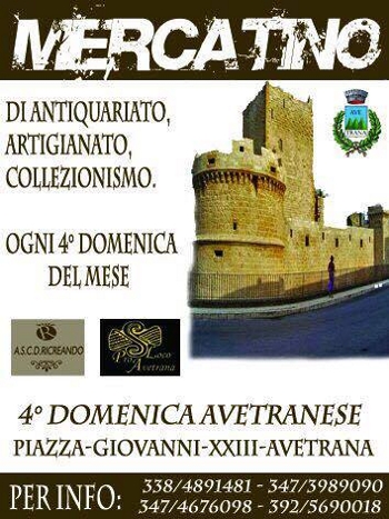di Avetrana organizza ogni IVª domenica del mese il mercatino dell’artigianato, collezionismo e hobbistica. La prima manifestazione si svolgerà domenica 26 marzo, in piazza Giovanni XXIII ad Avetrana.