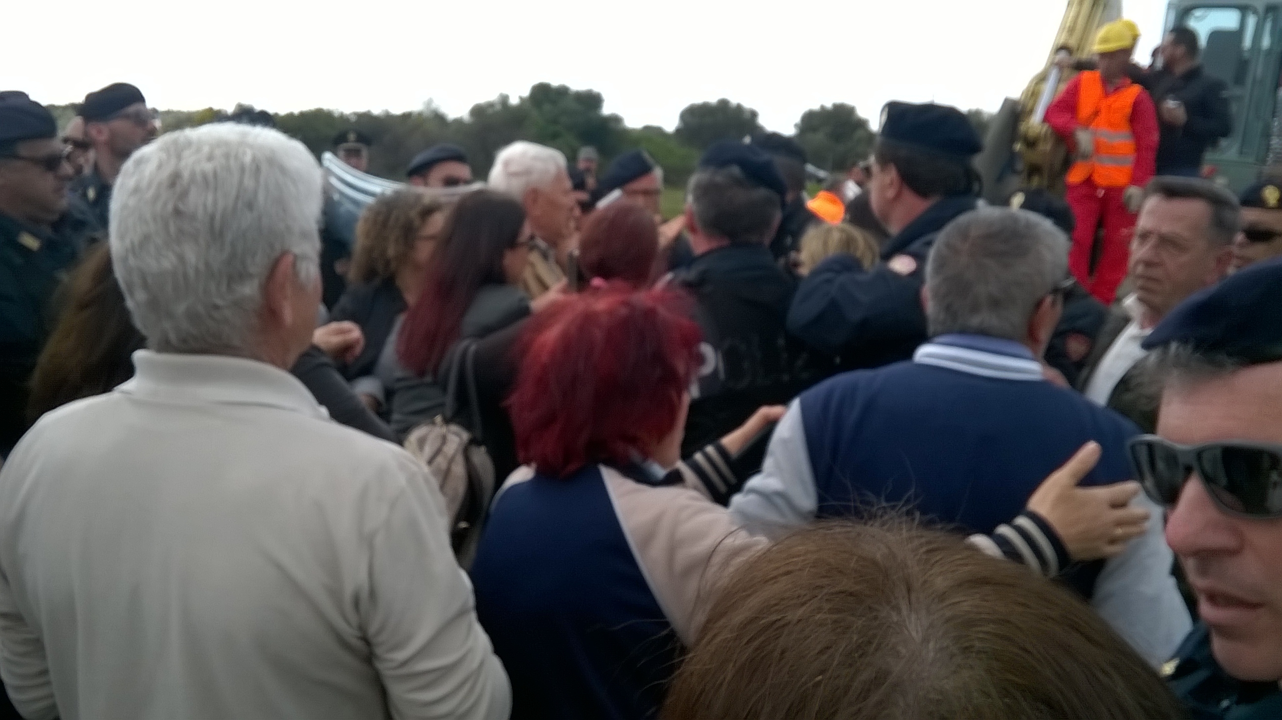 pacifica ma tenace resistenza di un gruppetto (un centinaio circa) di donne e uomini di Avetrana, che hanno presidiato la zona del cantiere, all’incrocio fra la “Tarantina” e il bivio per il Chidro, sin dalle prime ore del mattino.