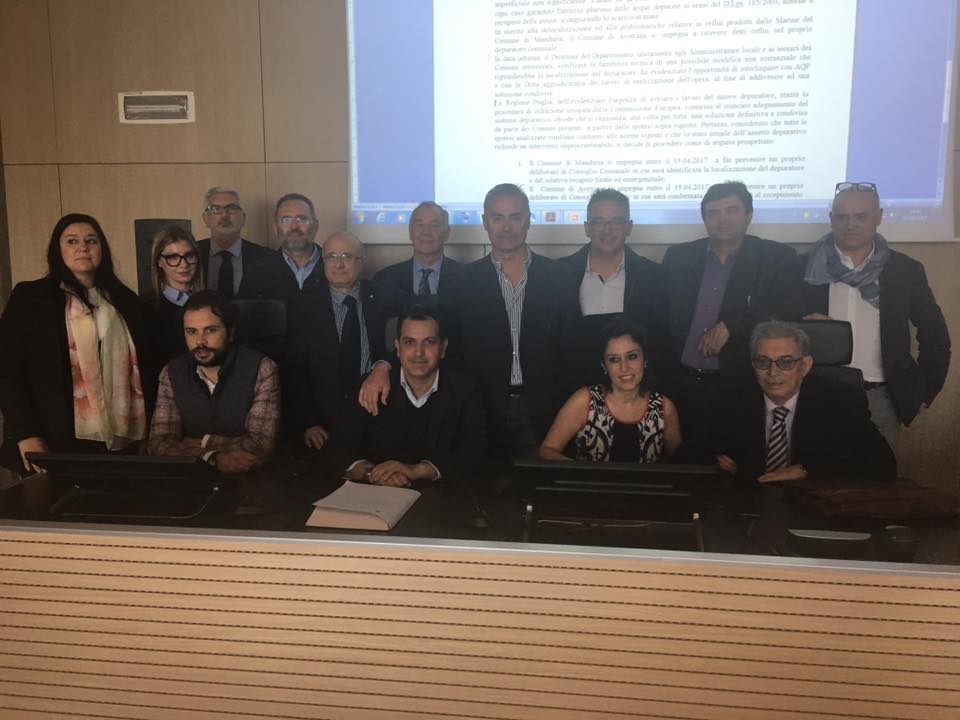 L’incontro odierno a Bari da me promosso, che ha visto i rappresentanti delle amministrazioni comunali di Manduria e Avetrana, di alcune associazioni e autorevoli tecnici confrontarsi con il Direttore del Dipartimento Mobilità, Qualità Urbana, Opere Pubbliche, Ecologia e Paesaggio, ing. Barbara Valenzano, ha messo in campo tutte le tre ipotesi progettuali in campo: chiarito il secco No del nuovo esecutivo regionale al progetto originario di depuratore consortile con scarico a mare; la piena condivisione intorno al progetto alternativo basato sul trattamento depurativo e riutilizzo delle acque reflue, da reimpiegare per usi plurimi attraverso la realizzazione di buffer ecologici; vagliato con attenzione anche la possibile delocalizzazione del sito previsto per il depuratore nell'entroterra (la fattibilità tecnica non appare un problema, previa intesa con AQP e la ditta aggiudicatice dei lavori).