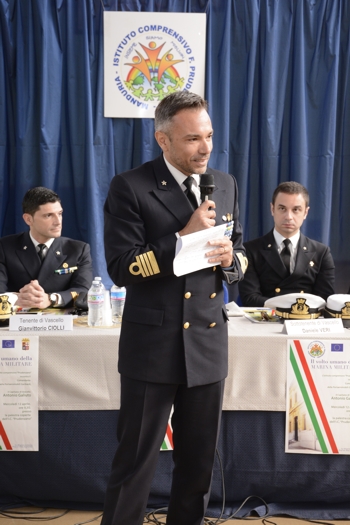 Ai ragazzi ha parlato del “volto umano” della Marina Militare, impegnata, da tempo, nell’operazione di contrasto al traffico di essere umani