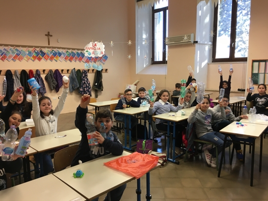 Nel corso del progetto diretto da Giulia Merico, gli alunni, con l’aiuto delle famiglie, si sono impegnati a raccogliere i rifiuti plastici prodotti in casa e a restituirli una “seconda vita” per realizzare giocattoli, bijoux e strumenti musicali