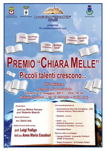 Melle – piccoli talenti crescono, un evento che vedrà coinvolti circa 65 giovani savesi che durante la serata riceveranno riconoscimenti e borse di studio per l’impegno profuso nello studio, il senso di responsabilità, lo spirito collaborativo, la cura e il rispetto per se stessi e per gli altri. Come ogni anno l’associazione “Chiara Melle” onlus, rinnova l’appuntamento con la serata finale di un progetto lungo e complesso, che vede nelle scuole e nella collaborazione con le famiglie e le altre agenzie educative del territorio, i veri punti di forza. Il progetto, infatti, oltre a essere il fiore all’occhiello dell’associazione, da anni ormai impegnata in attività tesi alla tutela dei diritti dei minori e delle loro famiglie e in percorsi di sensibilizzazione e prevenzione nelle scuole, ha come obiettivo prioritario quello di investire nel percorso formativo di giovani savesi e valorizzare i talenti secondo il principio del “fare bene” per “fare meglio”. E in questa ottica si collocano tutti i progetti, “Dipendo da me”, After School”, ”La legalità inizia in famiglia”,” Adolescenti in rete”, “A scuola di legalità”, solo per citarne alcuni, che l’associazione “Chiara Melle” da ormai sette anni realizza con incontestabili ricadute sul territorio. Quest’anno, durante la cerimonia, saranno premiate anche due aziende savesi leader nel loro settore, che si impegnano per la crescita civile e sociale del nostro paese: la Vinicola Savese dei Frat.lli Pichierri e l’Ottica Galeone di Antonio Galeone. Il premio alla cultura sarà consegnato a un geniale talento artistico, molto conosciuto all’estero, ma come spesso accade poco nel proprio paese, il liutaio Antonio Dattis. Ospiti d’onore della serata saranno la dott.ssa Anna Maria Casaburi, giudice onorario del Tribunale per i minori di Lecce e il prof. Luigi Fadiga, che nella sua lunga carriera è stato Garante per l’Infanzia e l’Adolescenza della Regione Emilia-Romagna, giudice del Tribunale per i minorenni di Bologna e dirigente dell’Ufficio Centrale per la giustizia minorile al Ministero della Giustizia, Presidente del Tribunale per i minorenni di Roma, della Commissione per le adozioni internazionali e della Sezione per i minorenni e per la famiglia alla Corte d’appello di Roma. Docente all’università Lumsa di Roma, vanta una grande esperienza come relatore e ha all’attivo numerose pubblicazioni.