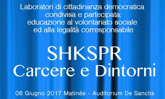Questa mattina, presso l’auditorium De Sanctis, nell’ambito della rassegna teatrale Licei in Scena, verrà rappresentato “Shkspr: carcere e dintorni”, nato dalla collaborazione tra il Liceo De Sanctis-Galilei, l’Associazione Culturale TeatroDellePietre di Marcantonio Gallo e la casa circondariale di Brindisi, e che ha come partner il CSV di Taranto, i Gruppi Volontariato Vincenziano A.I.C.Italia - Sez. Puglia e la Fondazione Vanni Longo.