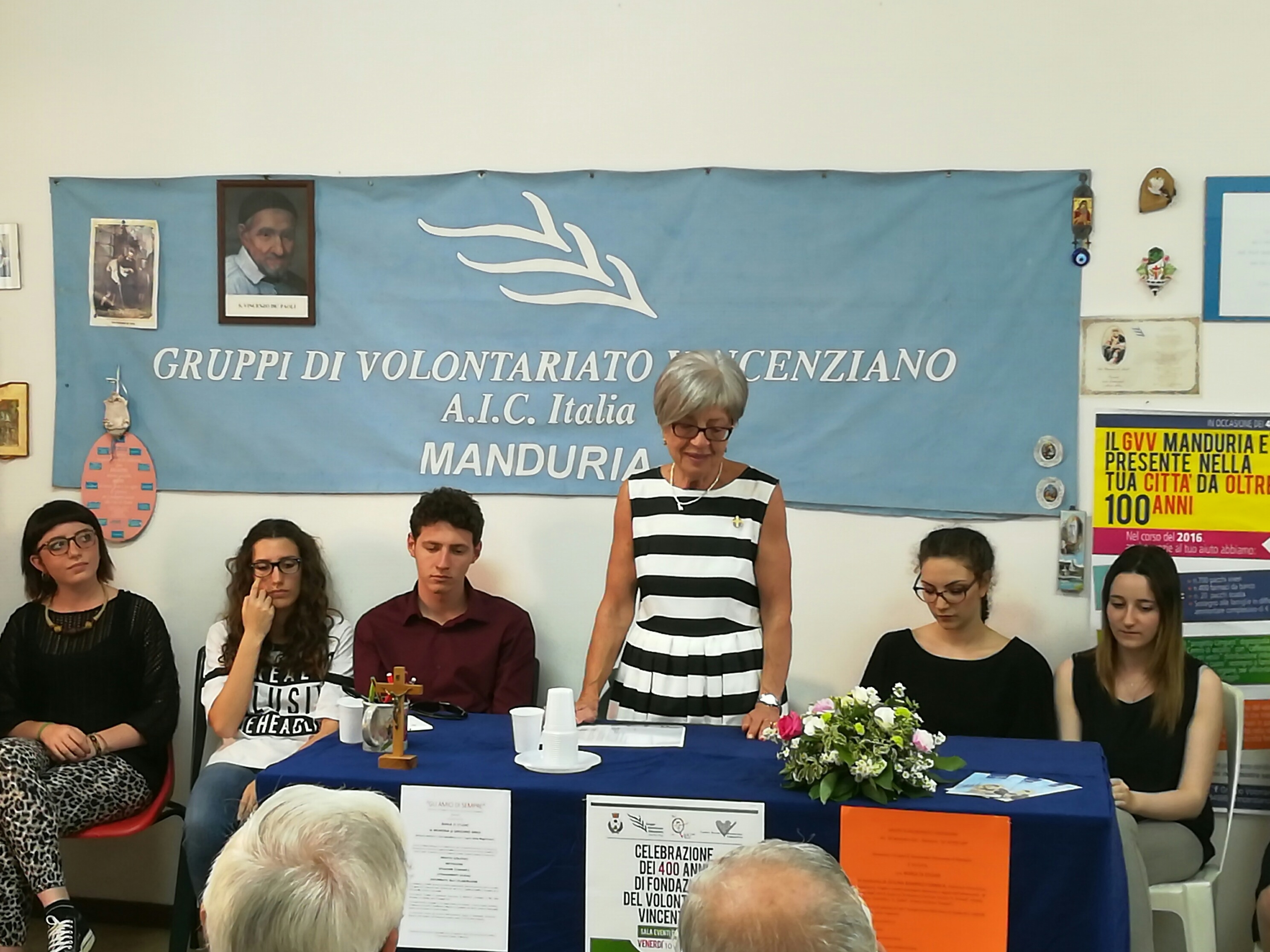 «Si, siamo animate da entusiasmo, ma nel significato del termine greco da cui deriva etimologicamente: ovvero “avere Dio dentro”» ha affermato Lucrezia Settanni, presidente della sezione di Manduria del Gruppo di Volontariato Vincenziano. «Questo entusiasmo caratterizza il nostro operato: sentiamo Dio dentro di noi e diamo amore a chi ha bisogno. In questo senso, le sette borse di studio rappresentano un atto di entusiasmo e di amore».