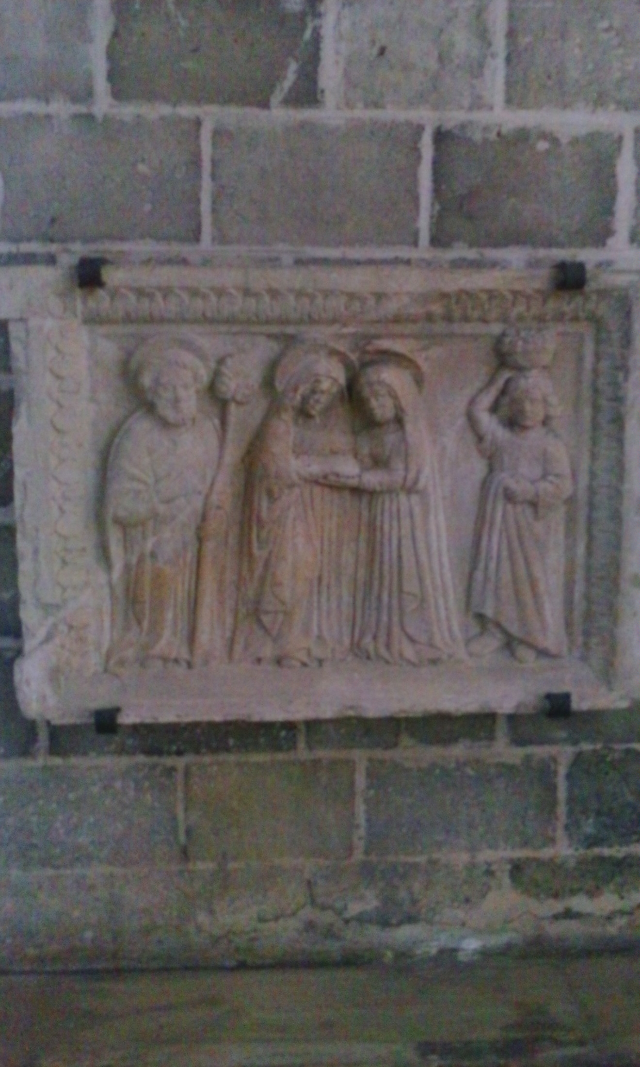 Questo riproduce un’altra scena tratta sempre dai Vangeli dell’infanzia di Gesù: la Visitazione di Maria alla cugina S.Elisabetta, madre di S.Giovanni Battista (Luca, I, 39-56) e, a mio sommesso parere, presenta assonanze stilistiche (oltre che, indubbiamente, tematiche) con i frammenti del primo pannello, tali da far ricondurre entrambe le opere ad un unico autore e ad un identico ciclo scultoreo che, probabilmente, doveva ornare anticamente qualche edificio sacro di Manduria, poi andato distrutto o ristrutturato.