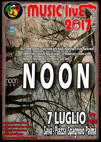 sociale “Sava Cè” anche quest’anno ripropone l’ormai consueto evento musicale estivo del “Giugno Savese”: il “Music live Sava Cè”, giunto alla sua VI edizione.Quest’anno l’associazione savese si pone l’obiettivo di invertire la rotta con una proposta musicale nuova, fresca ed affascinante: ospiti dell’edizione 2017 sono i Noon, band che nasce, come progetto musicale, nel 2015.