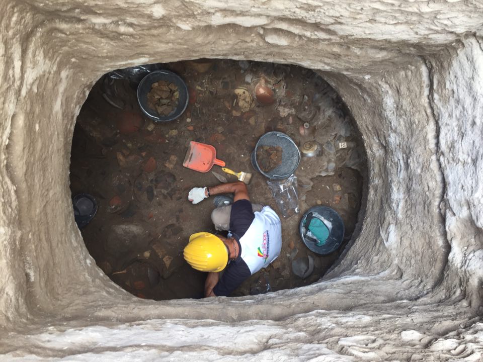 Dopo alcuni giorni di sospensione dei lavori, gli operai della ditta specializzata di “0S25 Tarentini” di Gregorio Tarentini, sotto la supervisione della Soprintendenza Archeologica (la direzione scientifica viene seguita dalla dott.ssa Laura Masiello, mentre scavo lo segue sul campo l’archeologo Gianfranco Dimitri), hanno ripreso gli scavi nella tomba scoperta mentre veniva eseguito un saggio del sottosuolo, propedeutico alla posa in opera di tubazioni della rete idrica. Saggio necessario in quanto la zona in oggetto è attigua al parco archeologico della città e, quindi, all’ampia area ricchissima di reperti della civiltà messapica.