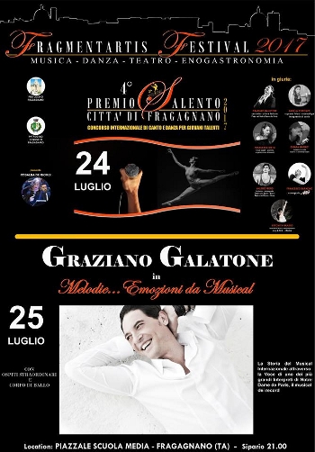 Il 25 luglio sarà poi la volta di Graziano Galatone che si esibirà in “Melodie…Emozioni da Musical”, un viaggio emozionale nel mondo dei musicals, reso possibile anche grazie all’ausilio di cantanti e di uno spettacolare trio di ballerini.