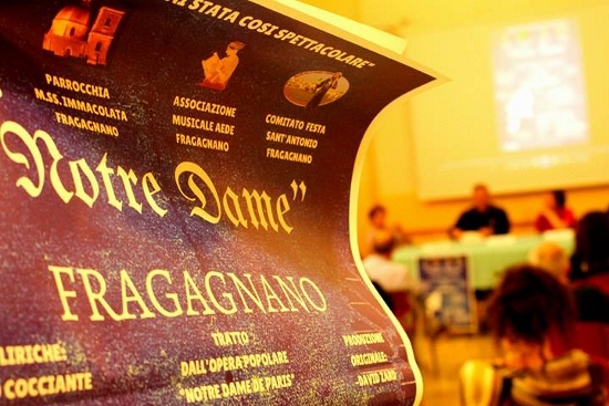 Si è tenuta ieri sera la conferenza stampa di presentazione dell’evento denominato “Notre Dame Fragagnano” che vedrà la rappresentazione teatrale dello spettacolo musicale di maggior successo nella storia francese, tratto dall’opera moderna di Riccardo Cocciante.